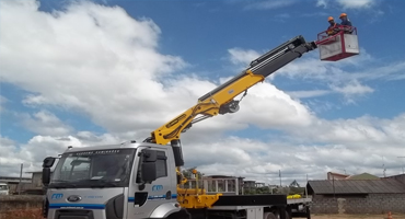 tipo Munck com cesto, veículos prancha, com uma equipe especializada em cargas indivisíveis/especiais operando com Içamento, remoções, movimentação, carga e descargas..